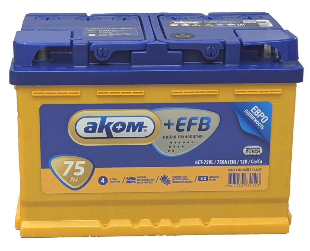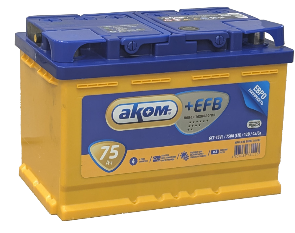 Покупая аккумулятор AKOM + EFB 75 Ач (750А) R+ у нас, вы получаете: