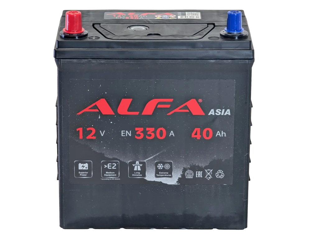 Аккумулятор ALFA Asia 40 L+ — это специализированное решение для компактных азиатских автомобилей, требующих одновременного соблюдения двух редких стандартов: прямой полярности и тонких клемм.