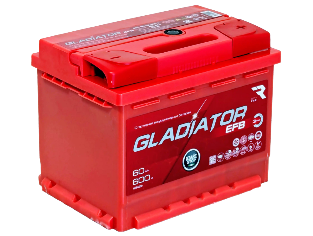 Аккумулятор GLADIATOR EFB 60 R — это мощный и выносливый источник энергии, разработанный в России для современных легковых автомобилей. Благодаря передовой технологии EFB (Enhanced Flooded Battery), он обеспечивает стабильную работу в автомобилях с системой Start-Stop и высоким энергопотреблением, гарантируя уверенный запуск и долгий срок службы.