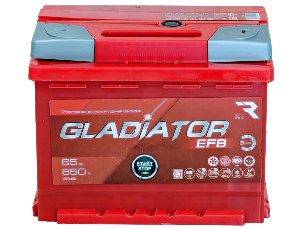 Аккумулятор GLADIATOR EFB 65 R — это мощный и выносливый источник энергии, созданный в России для современных автомобилей с высокими требованиями к электросистеме. Благодаря технологии EFB (Enhanced Flooded Battery), он идеально подходит для машин, оснащенных системой "Старт-Стоп", и обеспечивает стабильную работу в условиях интенсивной городской эксплуатации.