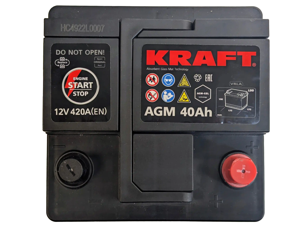 Аккумулятор KRAFT AGM 40 R+ — это высокотехнологичное решение для современных японских и корейских автомобилей, требующих максимальной производительности в компактном корпусе. Он объединяет в себе три ключевые особенности: передовую технологию AGM, "кубический" форм-фактор 175x175x190 мм и тонкие (Asia/JIS) клеммы.