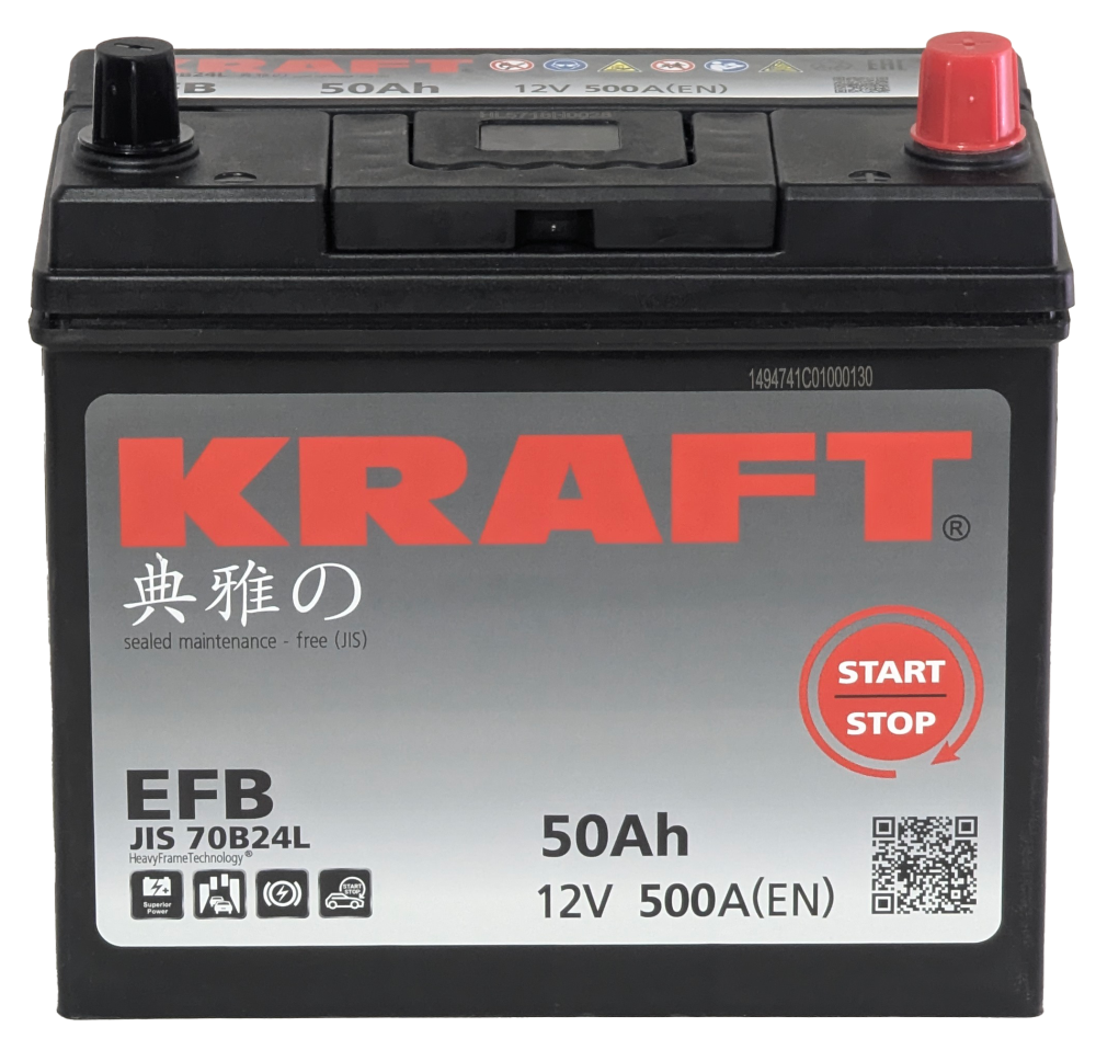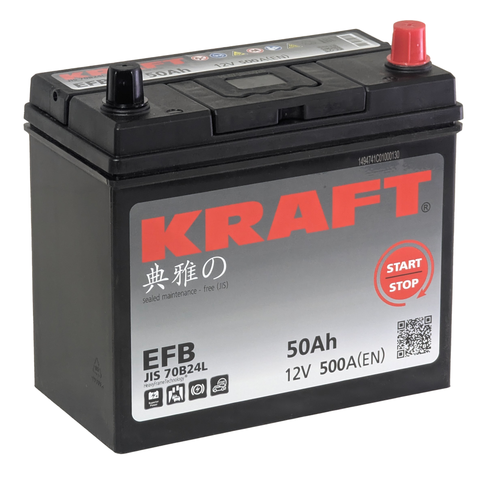 KRAFT EFB Asia 50 R+: Мощность EFB для азиатских авто с толстыми клеммами